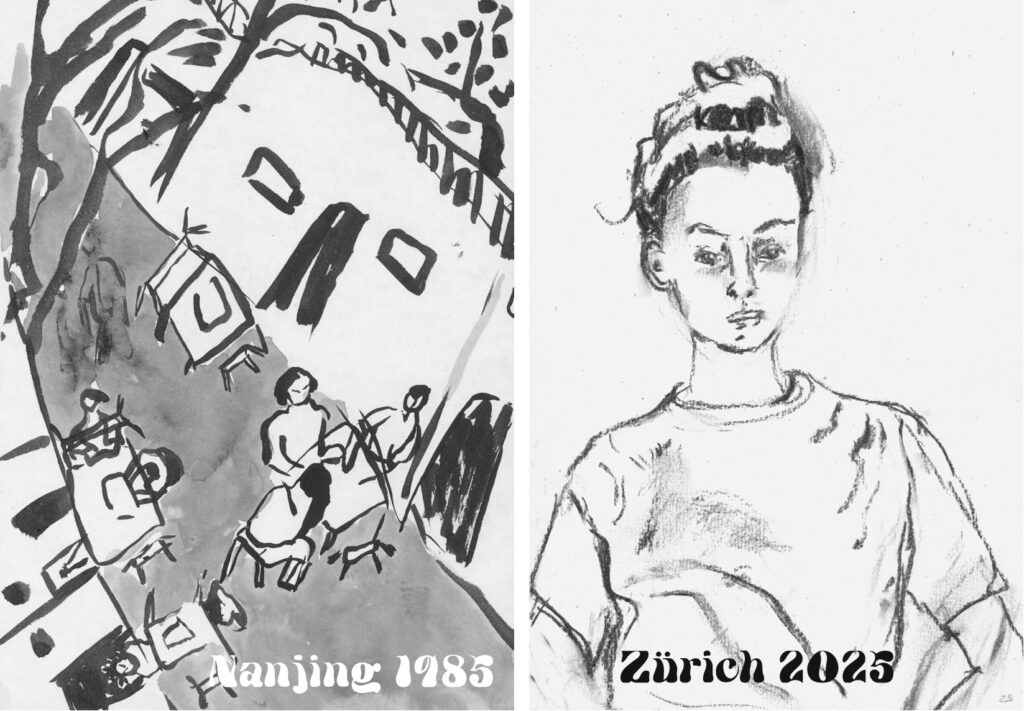 In den ehemaligen Waschräumen der SBB zeige ich Tuschezeichnungen aus China 1985 und Porträtzeichnungen aus Zürich 2025.